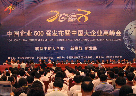 2008年8月30日,由中國企業(yè)聯(lián)合會(huì)、中國企業(yè)家協(xié)會(huì)主辦、寧夏回族自治區(qū)人民政府協(xié)辦、銀川市人民政府承辦的2008中國企業(yè)500強(qiáng)發(fā)布暨中國大企業(yè)高峰會(huì)在銀川市舉行。本次論壇的主題是轉(zhuǎn)型中的大企業(yè):新挑戰(zhàn)、新發(fā)展。