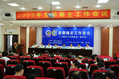 2009年全國雇主工作會議在黑龍江召開由中國企業(yè)聯(lián)合會、中國企業(yè)家協(xié)會主辦,黑龍江省企業(yè)聯(lián)合會承辦的2009年全國雇主工作會議于8月12日在黑龍江省哈爾濱市召開,會議主題為“新形勢下雇主工作面臨的新挑戰(zhàn)、新任務(wù)”。中國企聯(lián)執(zhí)行副會長陳蘭通、副理事長劉鵬,黑龍江省企業(yè)聯(lián)合會會長張成義,黑龍江省省長助理、省國資委主任趙杰、黑龍江省工業(yè)和信息化委員會副主任龐光明,黑龍江省人力資源和社會保障廳副廳長賈輝,黑龍江省總工會副主席郭長義、黑龍江省企業(yè)聯(lián)合會常務(wù)副會長兼秘書長王重華出席了會議。來自全國21個省、自治區(qū)、直轄市和26個中心城市企聯(lián)雇主工作負(fù)責(zé)人,以及部分企業(yè)代表共120多人參加了這次會議。與會代表積極參與討論,提出問題和建議,互相溝通信息,總結(jié)交流經(jīng)驗(yàn),增進(jìn)共識、明確思路,為進(jìn)一步推動企聯(lián)系統(tǒng)雇主工作和三方機(jī)制建設(shè),幫助企業(yè)有效應(yīng)對危機(jī)沖擊、齊心協(xié)力、渡過難關(guān)做出新成績、新貢獻(xiàn)。
