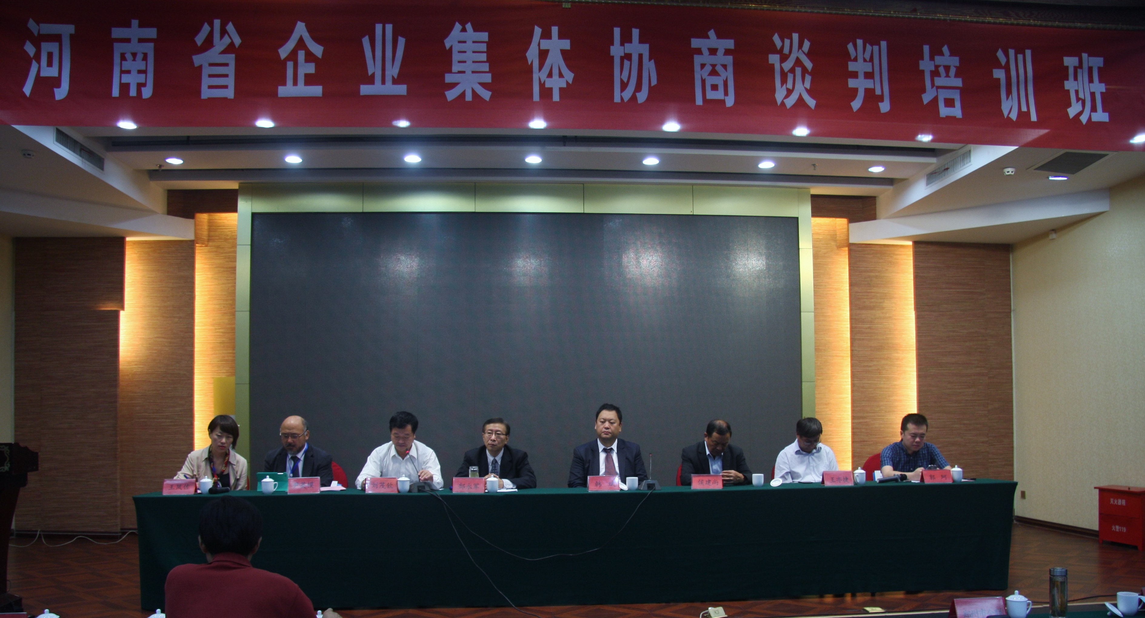 2014年9月22日至24日,河南省企業(yè)集體協(xié)商談判培訓班在洛陽舉行。此次培訓旨在幫助企業(yè)建立和完善集體協(xié)商和集體合同制度,構(gòu)建和諧勞動關(guān)系。中國企業(yè)聯(lián)合會雇主工作部副主任韓斌、河南省企業(yè)聯(lián)合會執(zhí)行副會長兼秘書長郜永軍、洛陽市國資委副主任劉茂欽、洛陽市企業(yè)聯(lián)合會會長侯建尚出席開班儀式并致辭。