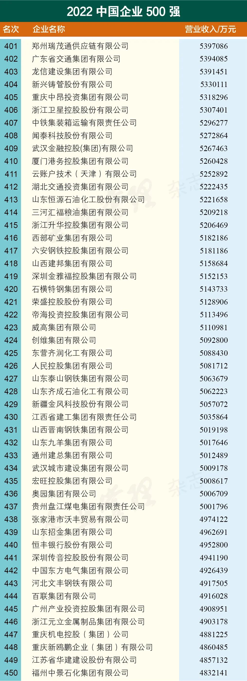 重磅發(fā)布 | 2022中國企業(yè)500強名單